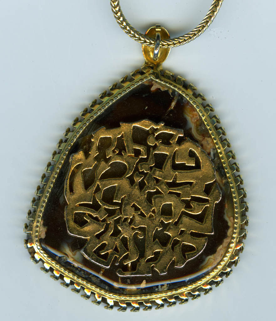 Pendant decorated with Ben Shahn's Alphabet of Creation