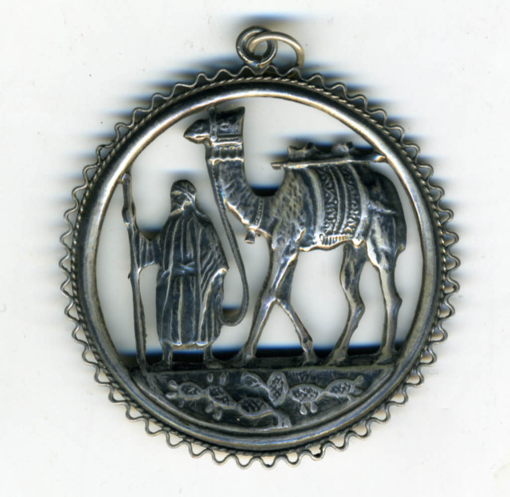 Pendant depicting a man leading a camel
