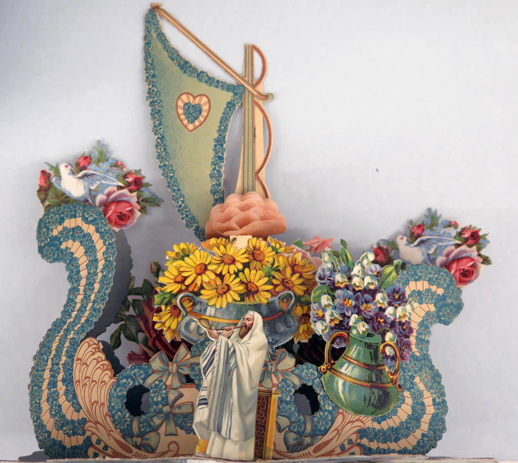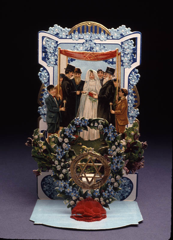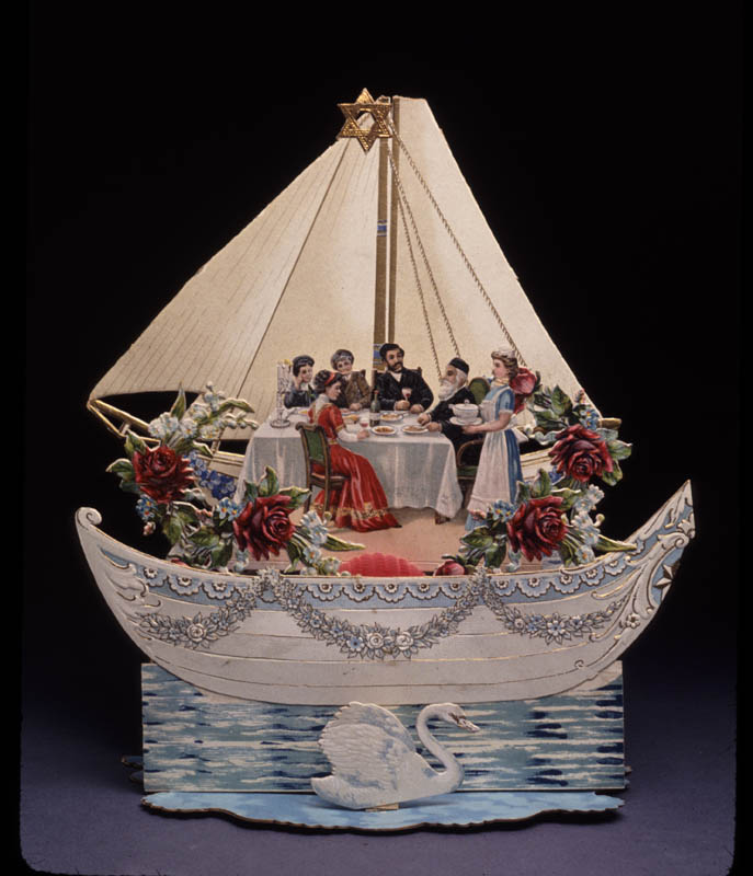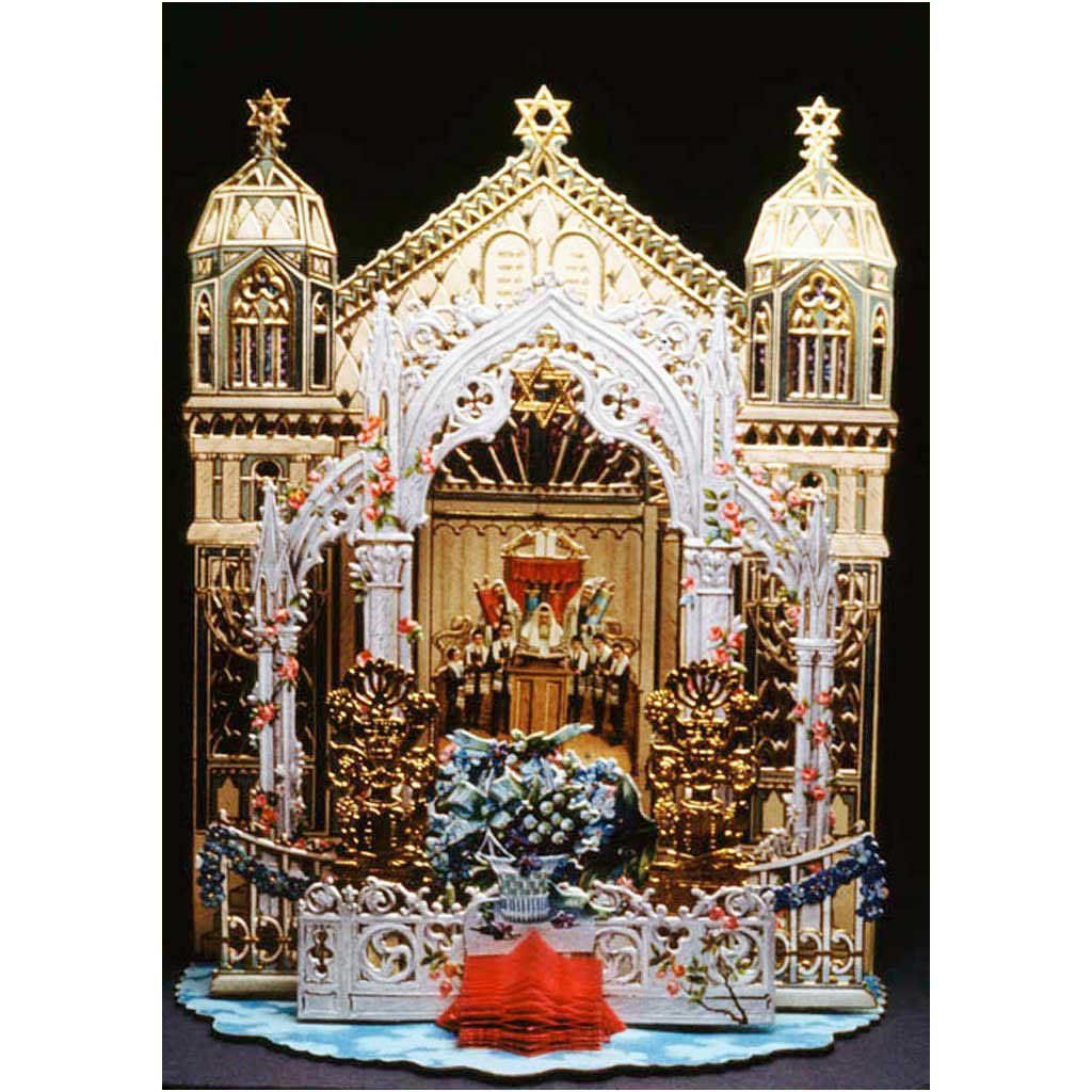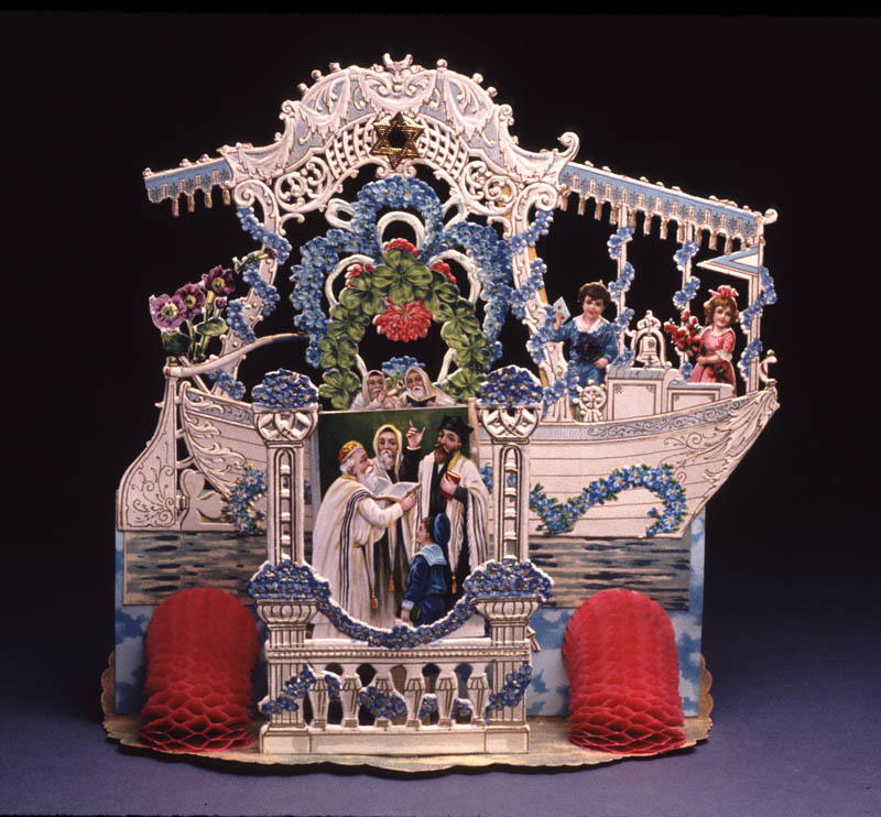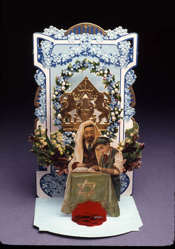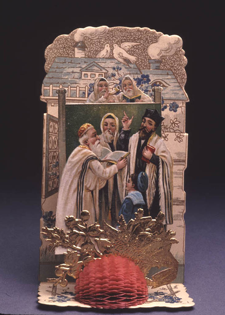 Rosh Hashanah greeting card depicting a man blowing a shofar