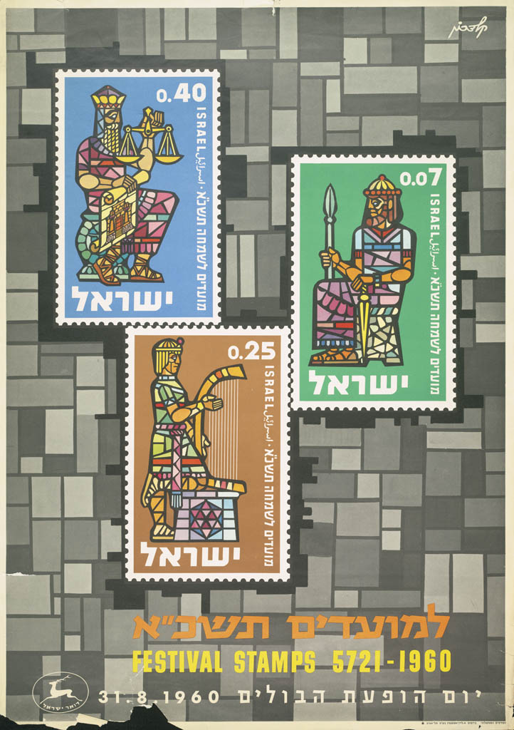 Poster advertising Israeli FESTIVAL STAMPS 5721 - 1960