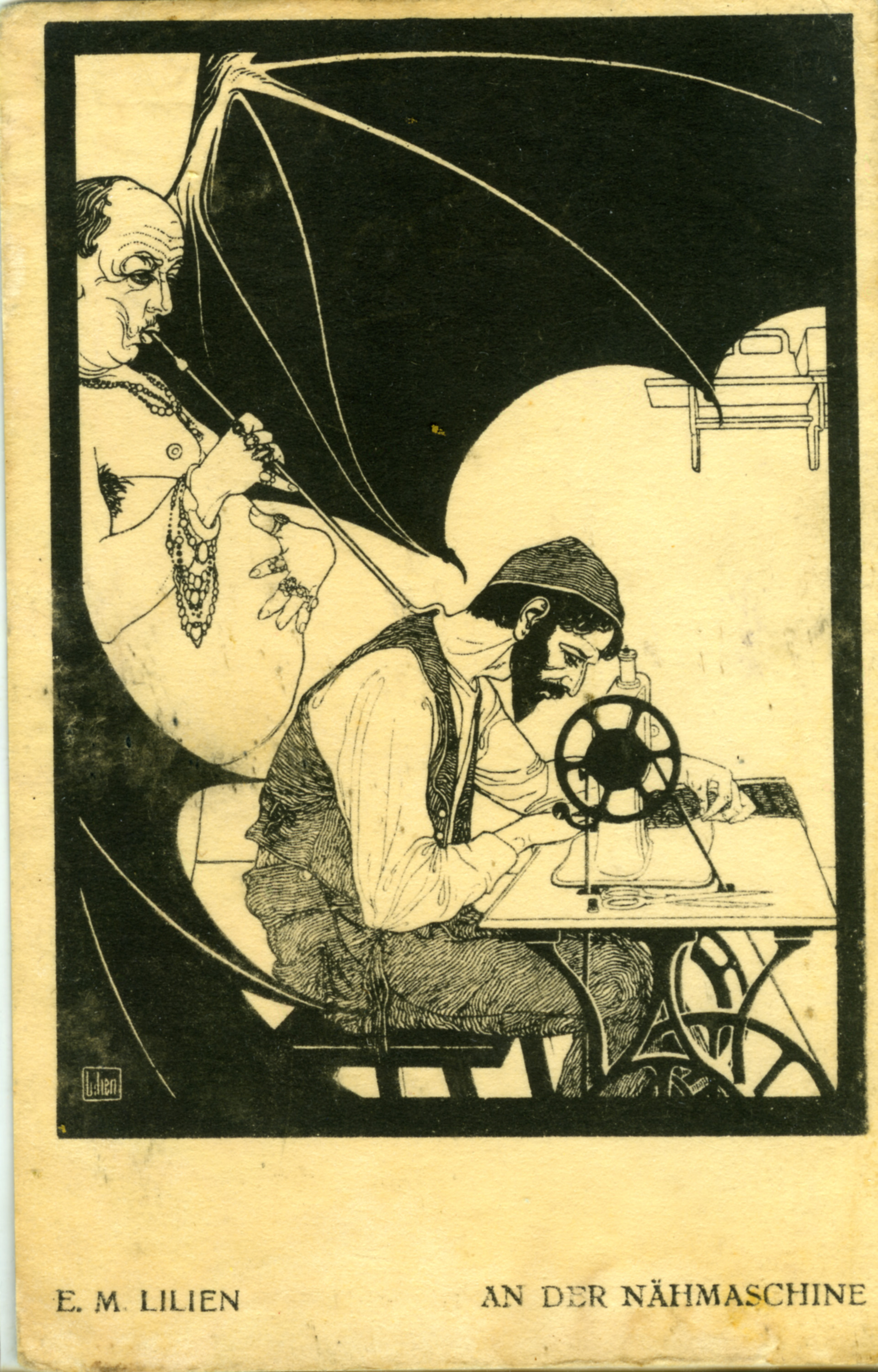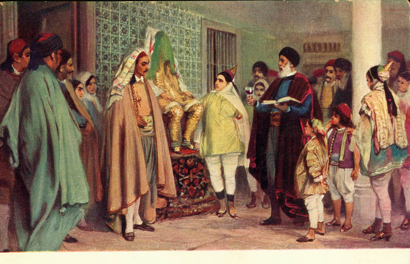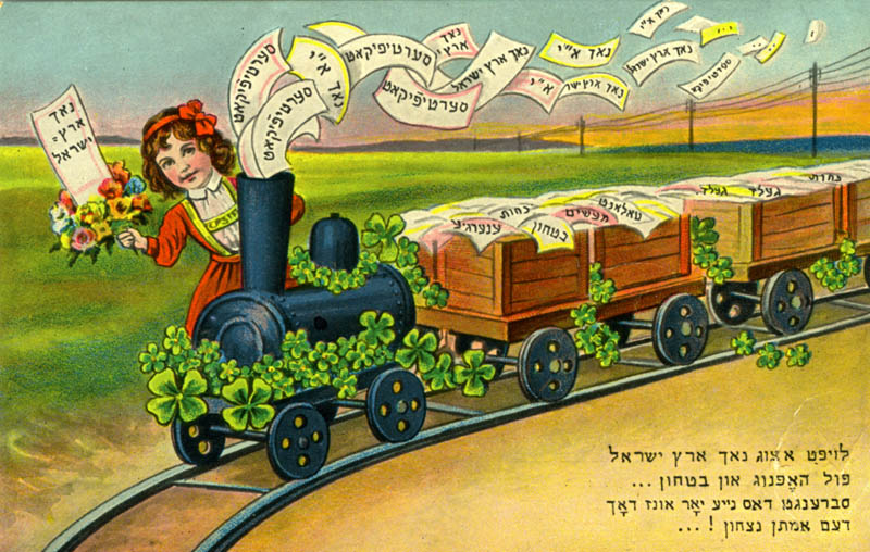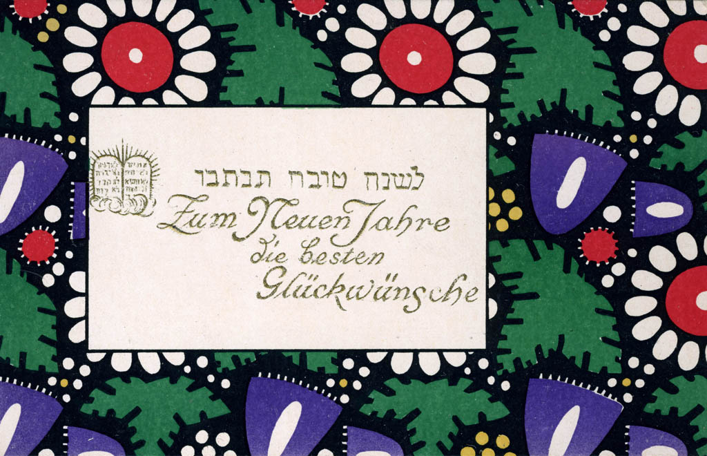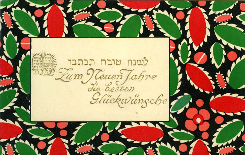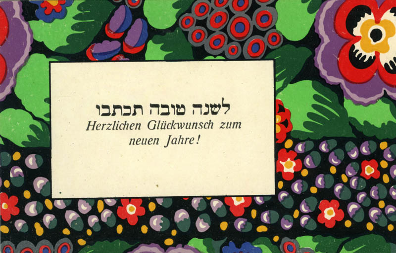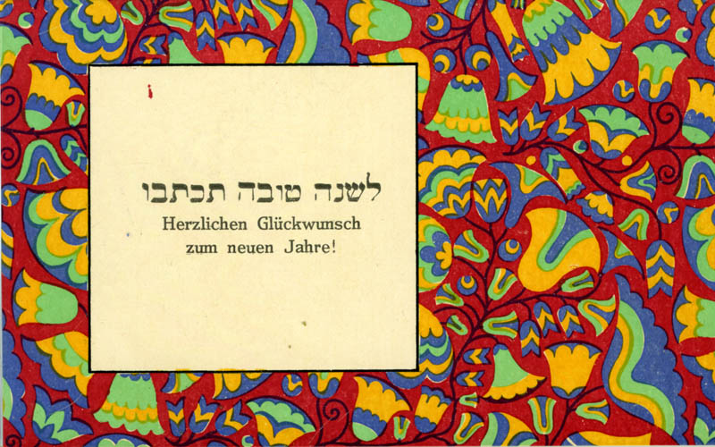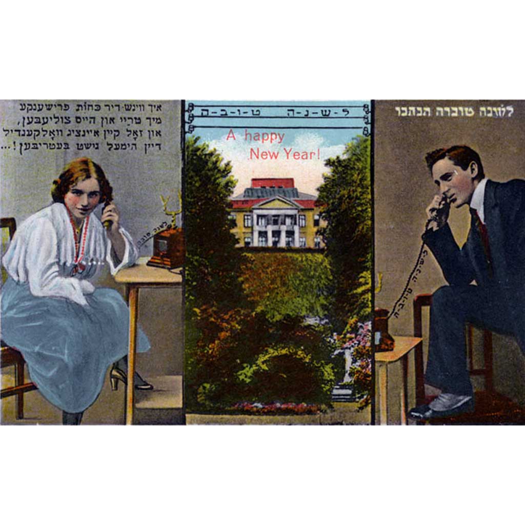 Rosh Hashanah postcard depicting a man and woman conversing on the telephone