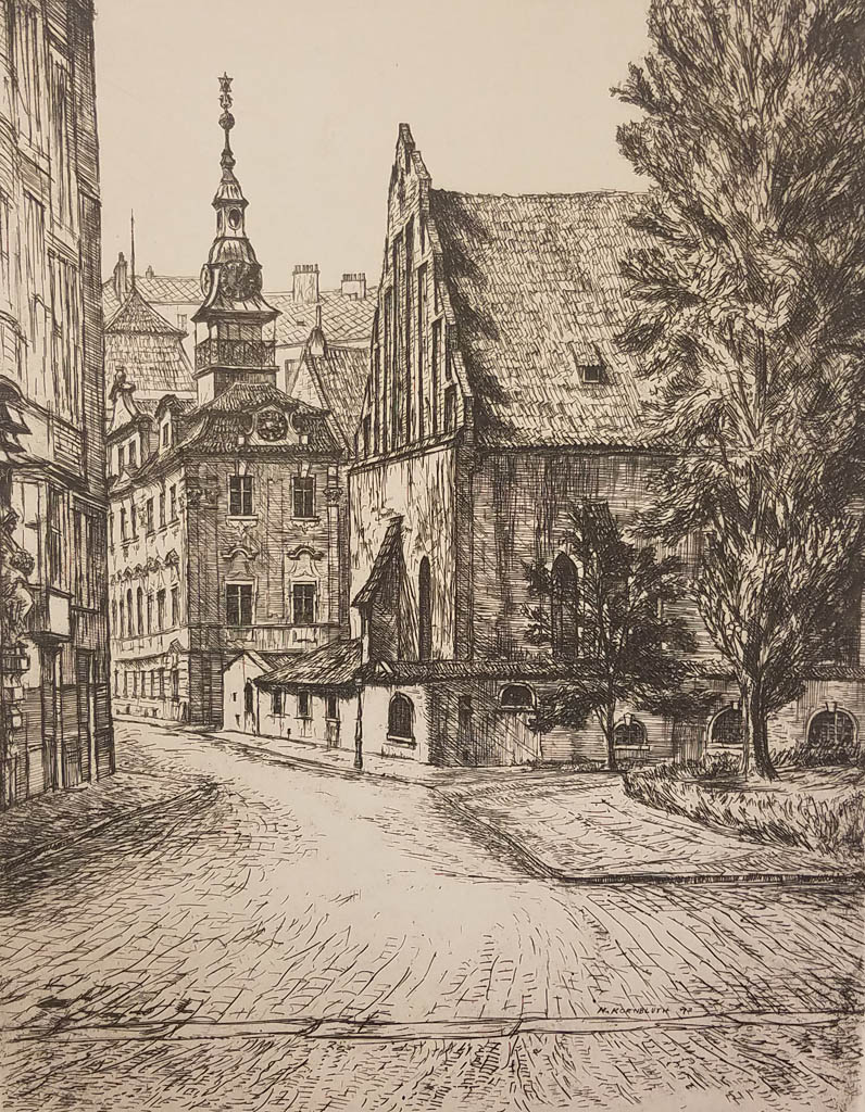 "The Alt Neu Synagogue and the Hebrew Clock, Prague"