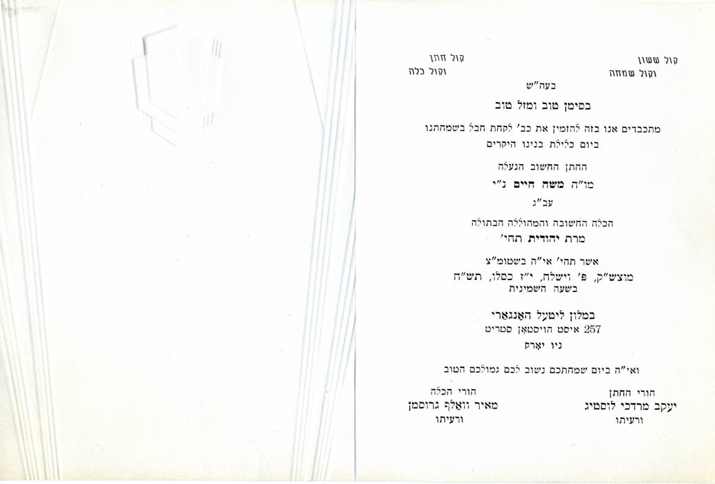 Renee and Chaim Gross Hanukkah/New Year card sent to Mr. and Mrs. Bernard Gartlir