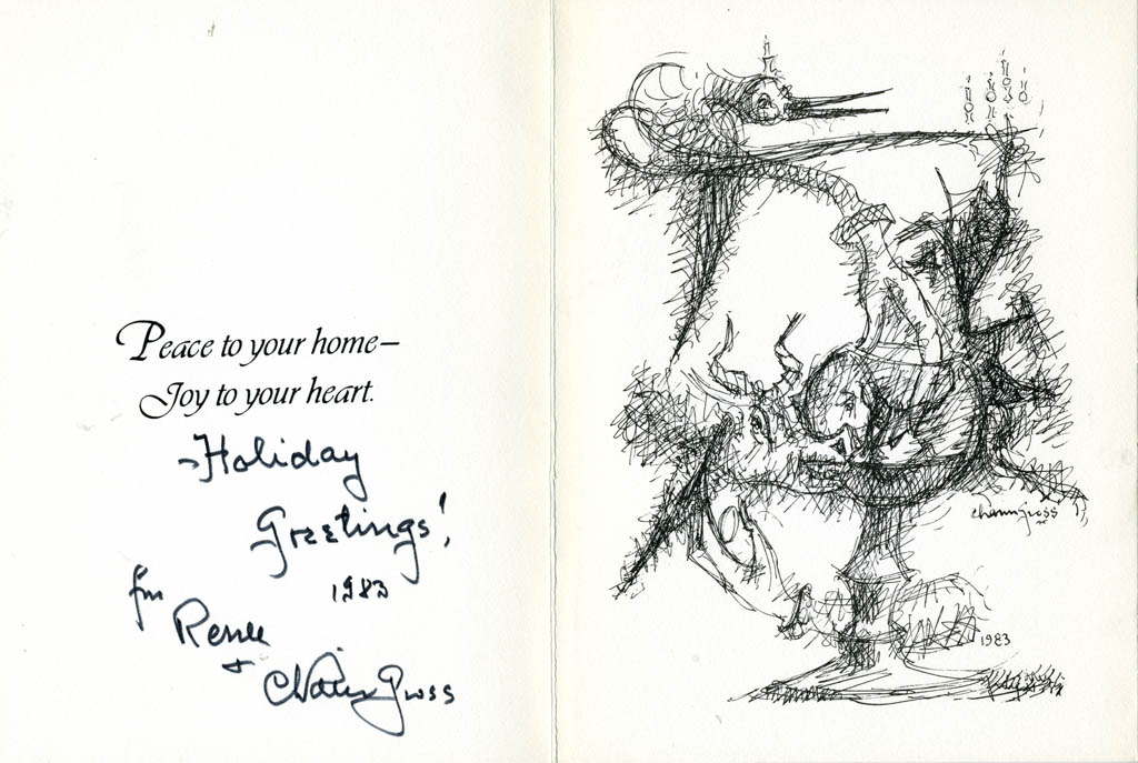 Renee and Chaim Gross holiday card sent to Mr. and Mrs. Bernard Gartlir