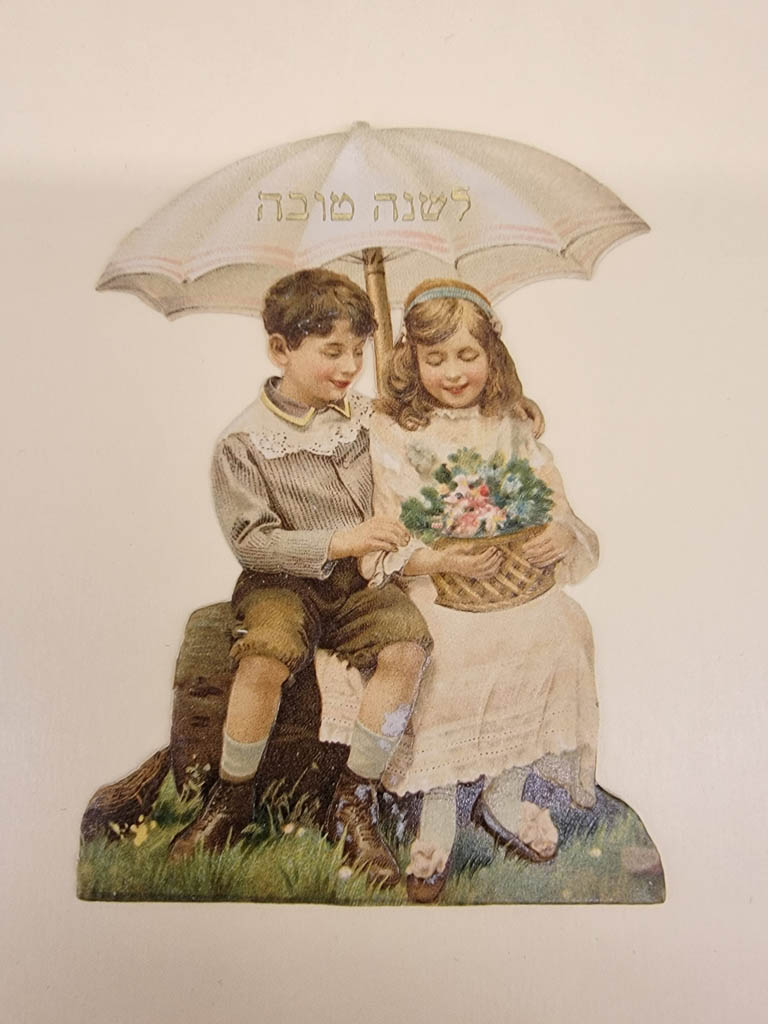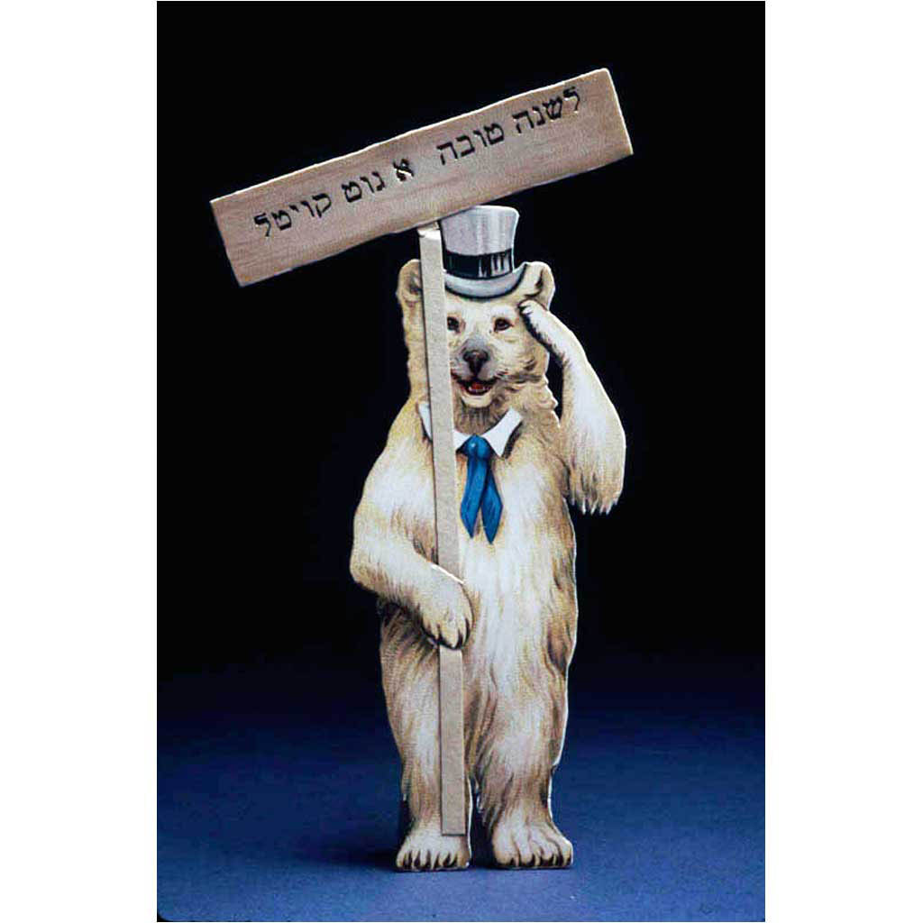 Rosh Hashanah greeting card depicting a bear wearing a hat