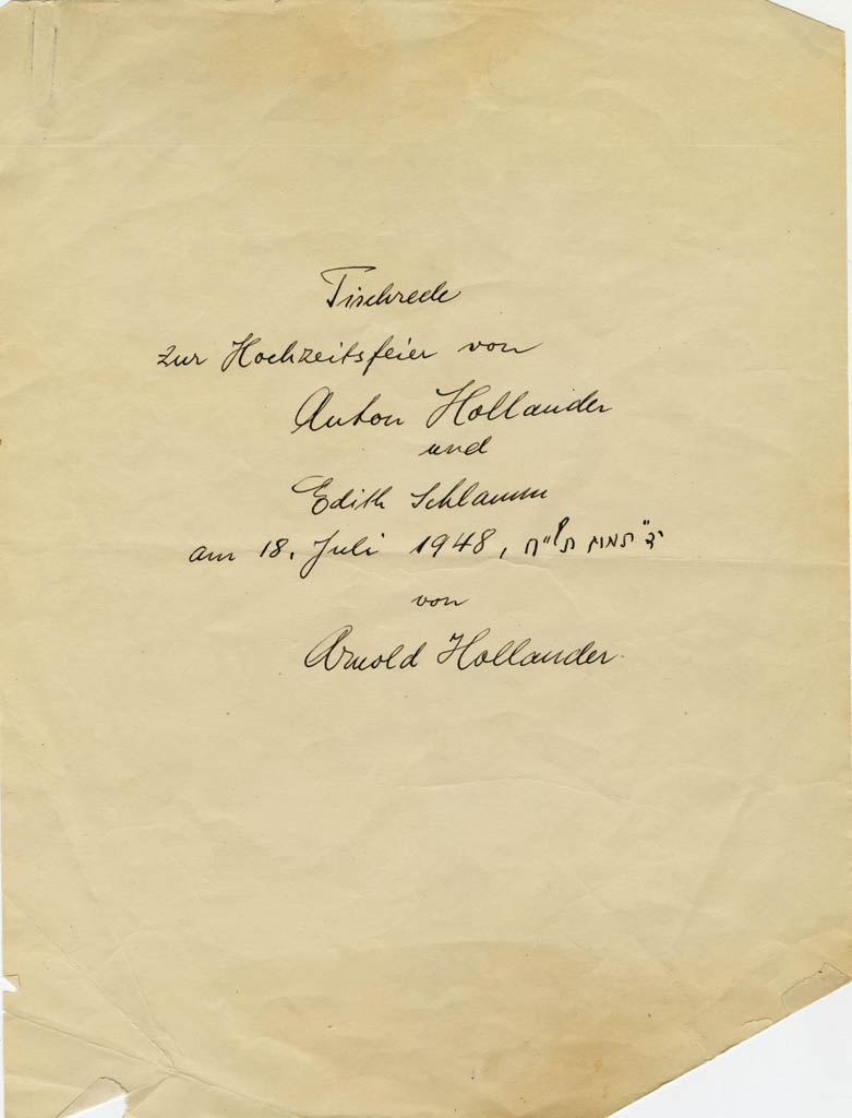 Wedding dinner speech Anton Hollander and Edith Schlamm