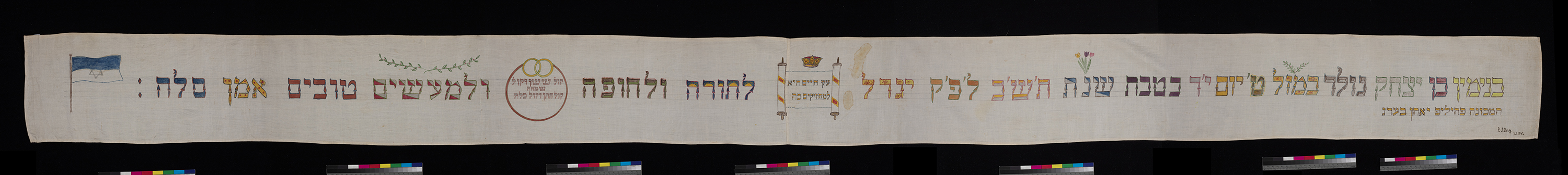 Torah binder (wimpel) of Binyamin (Phillip Jahn Berg) son of Yitzchak