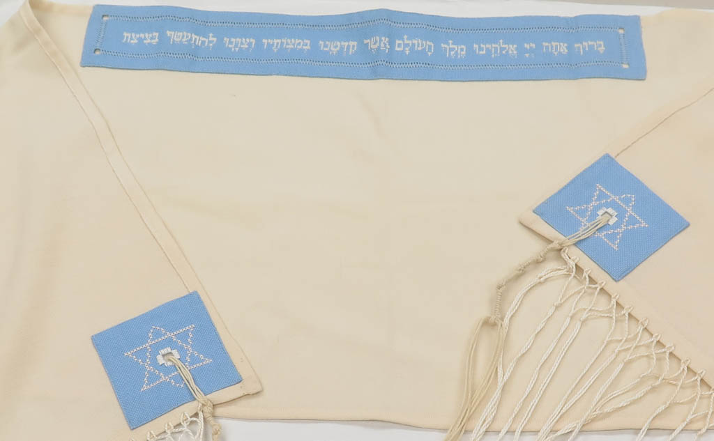 Prayer shawl (tallit) with matching skullcap, prayer shawl and phylactery bag