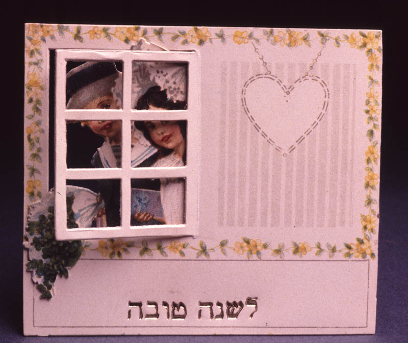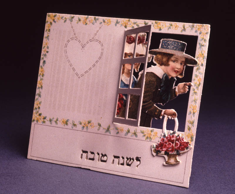 Rosh Hashanah card depicting a boy and girl at a window
