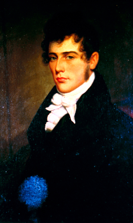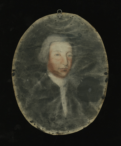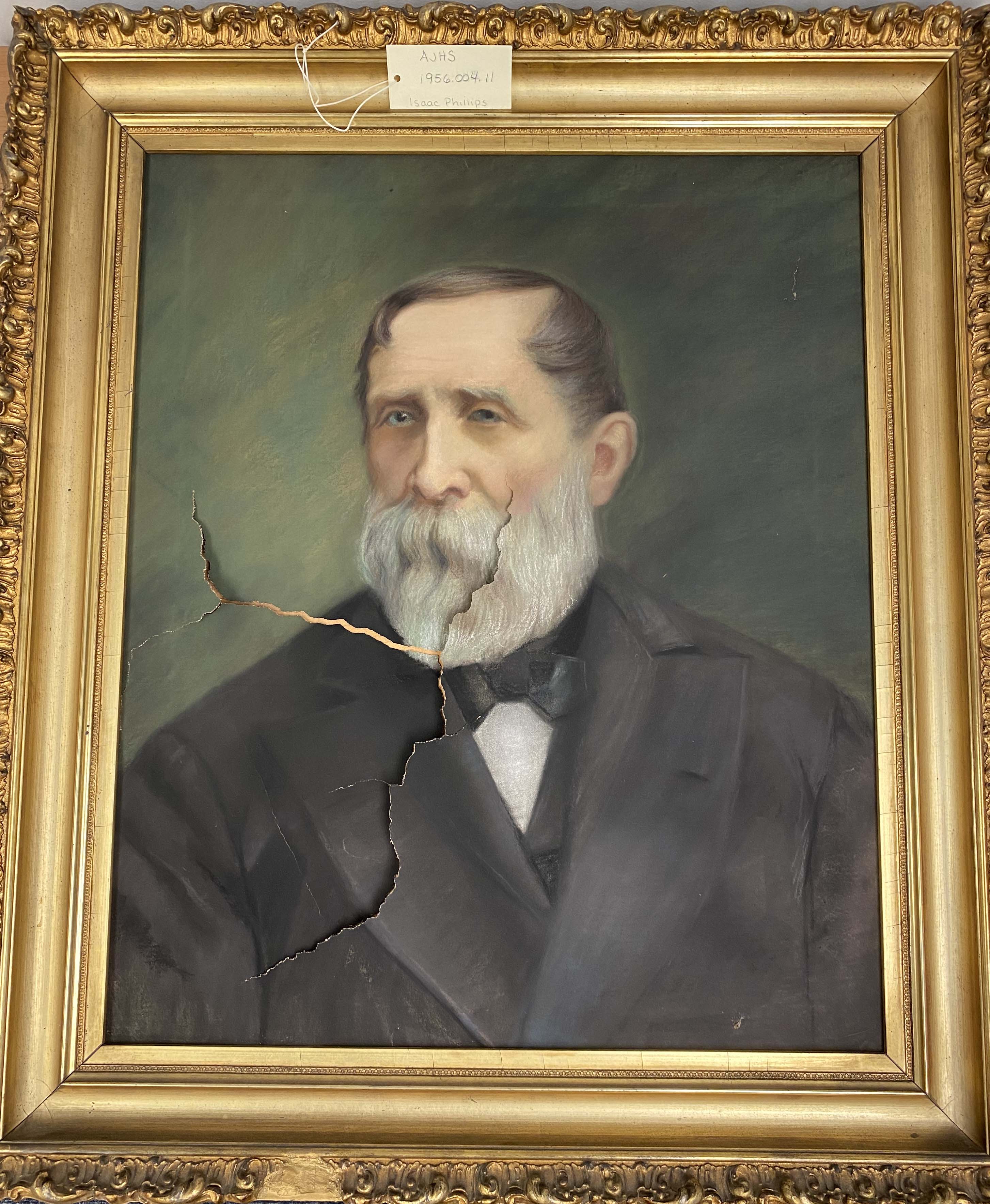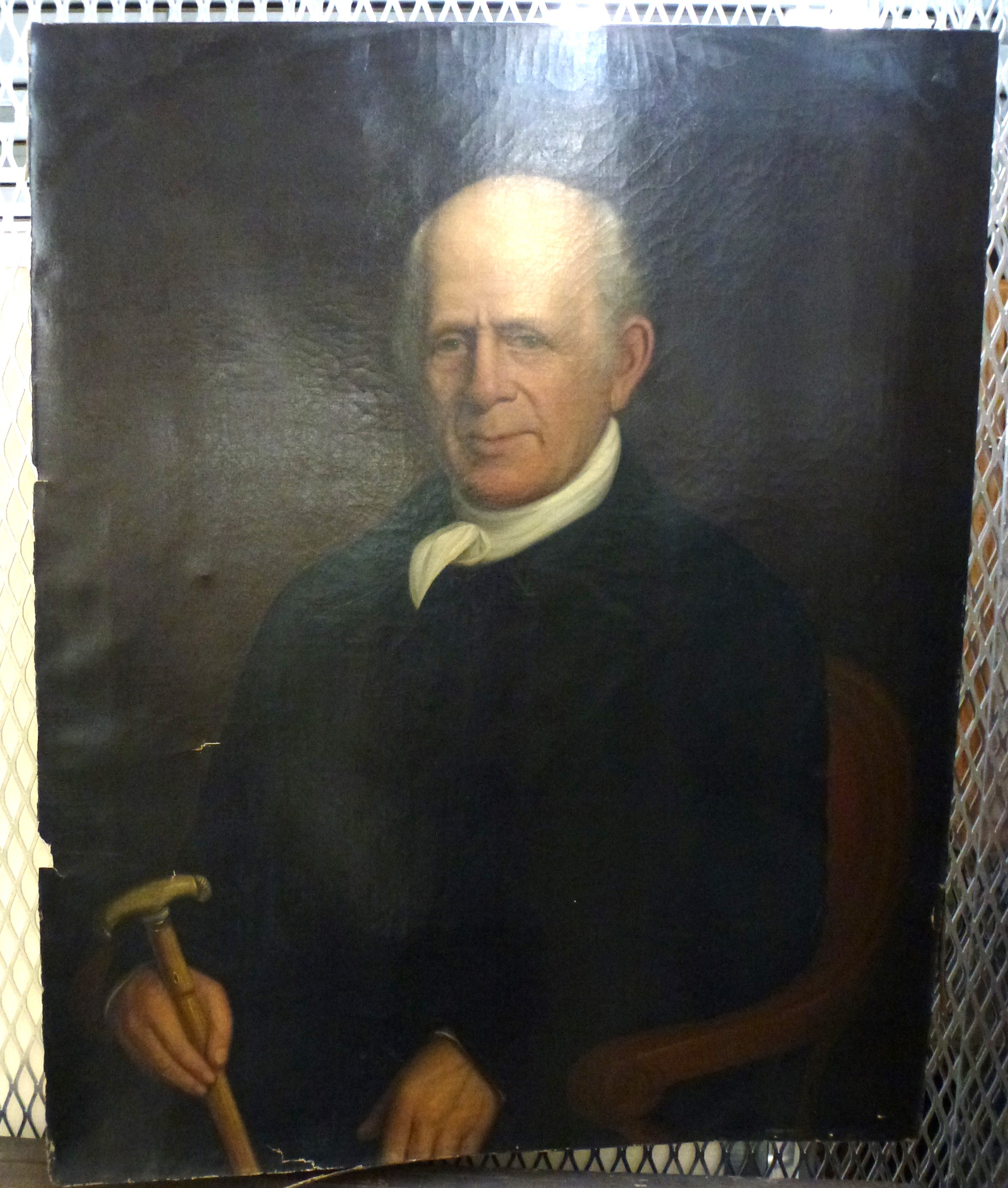 Painting of Naphtali Phillips, 3/4 length, seated in armchair, holding walking stick in right hand