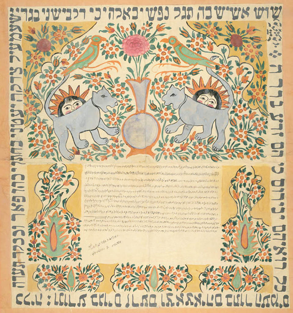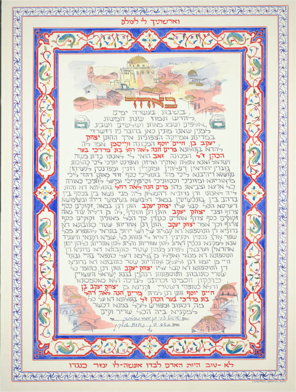 Marriage contract of Yitzhak Yaakov Weisman and Miriam Chanah Leah Rachel Zeev (ketubah) (ketubah)
