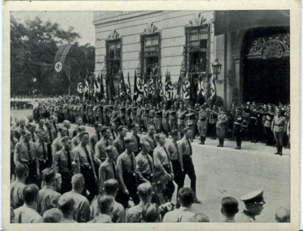 Adolf Hitler und sein Weg zu Grossdeutschland: Nr. 240 Gedenkfeier der SS-Standarte 89. die am 25 Juli die Befekung des Bundeskanyleramtes durchführte (Wien. Juli 1938)