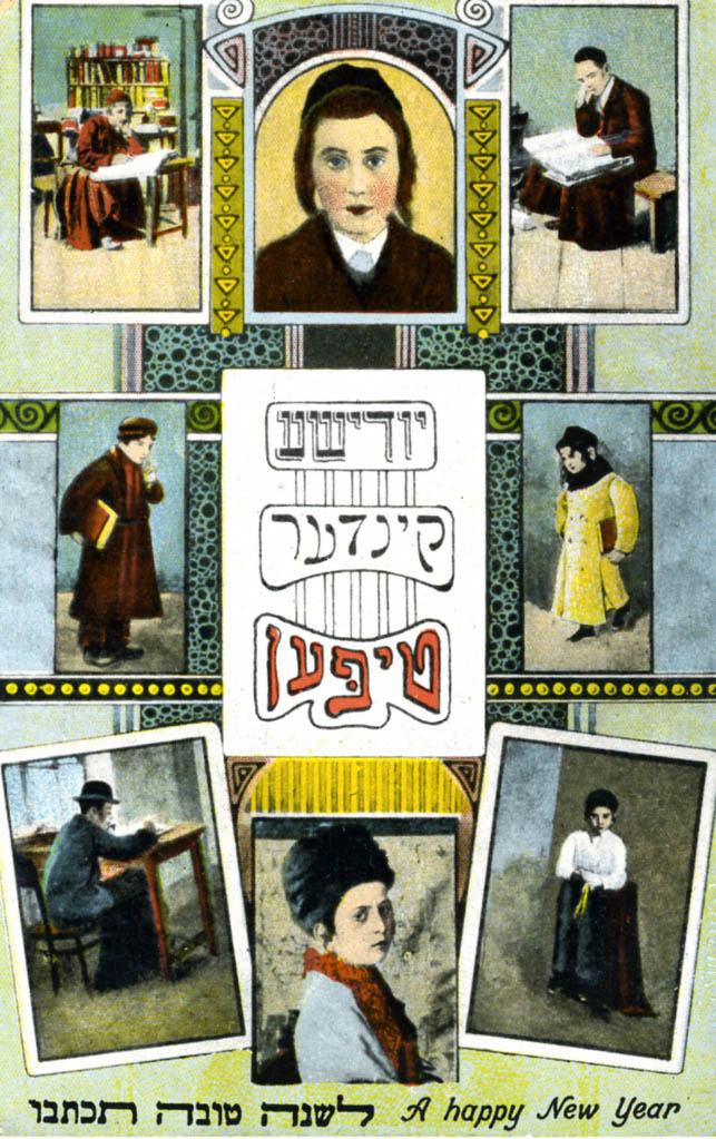 Rosh Hashanah postcard: Jewish children types