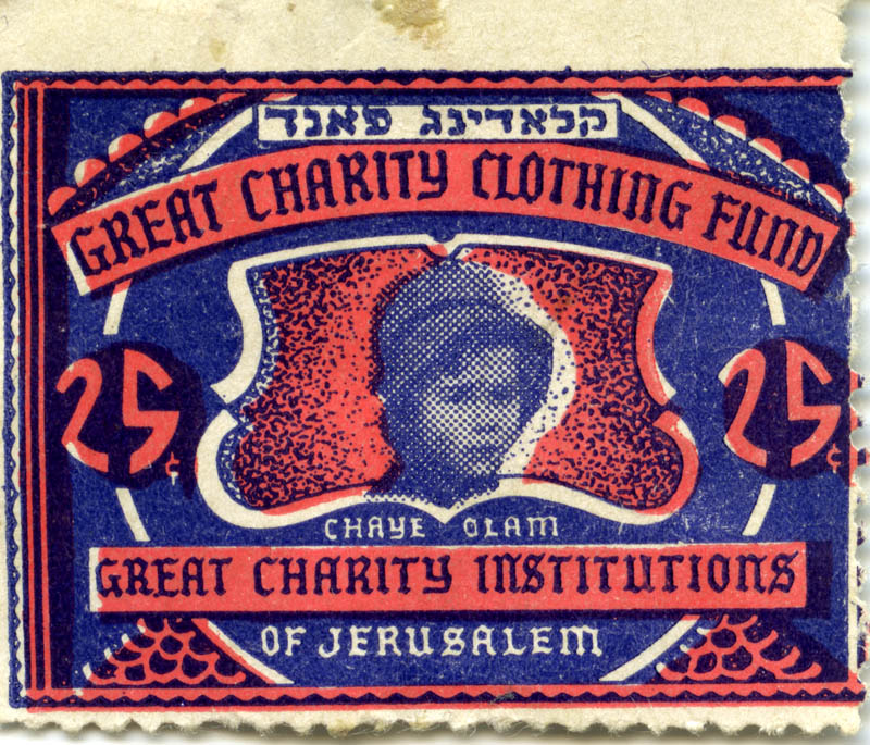 Charity stamp - fundraiser for the Great Charity Clothing Fund Chaye Olam of Jerusalem