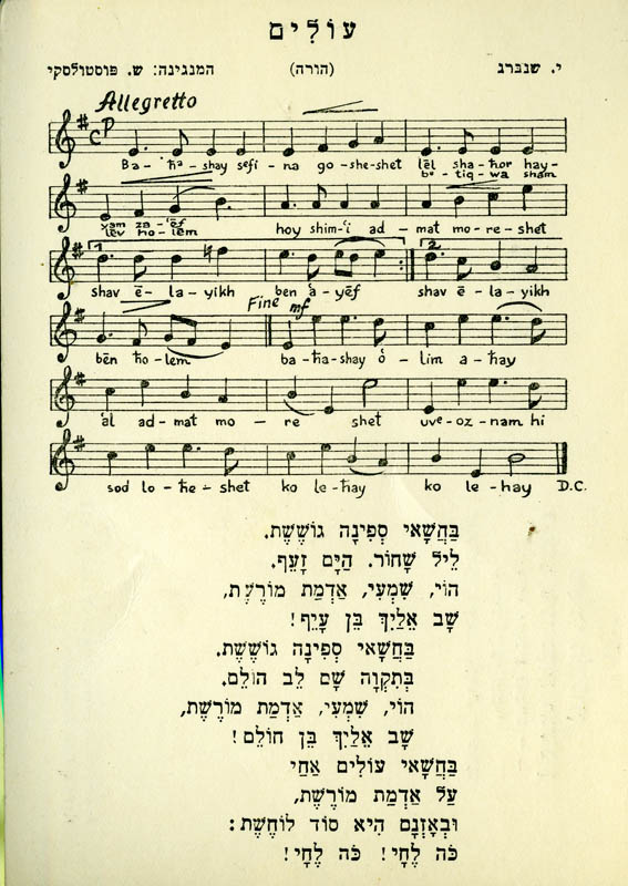 JNF postcard: Shir habatsoret