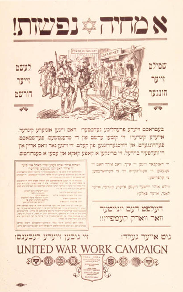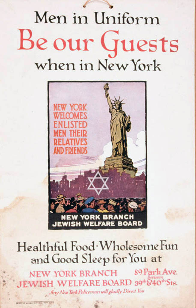 Jewish Welfare Board poster welcoming soldiers when in New York