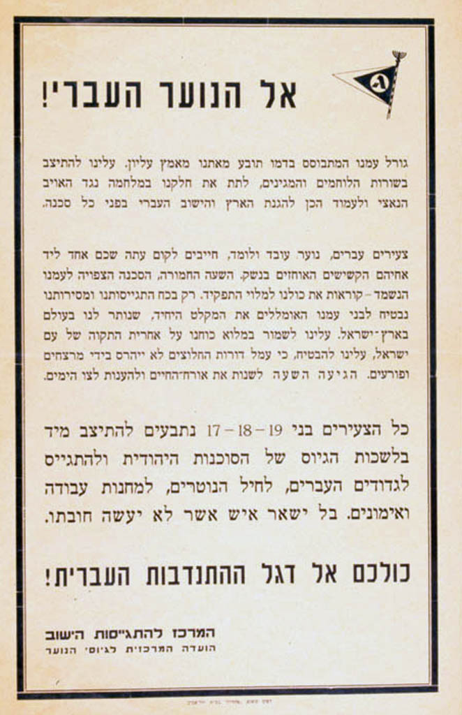 Poster calling on youth to defend the Yishuv