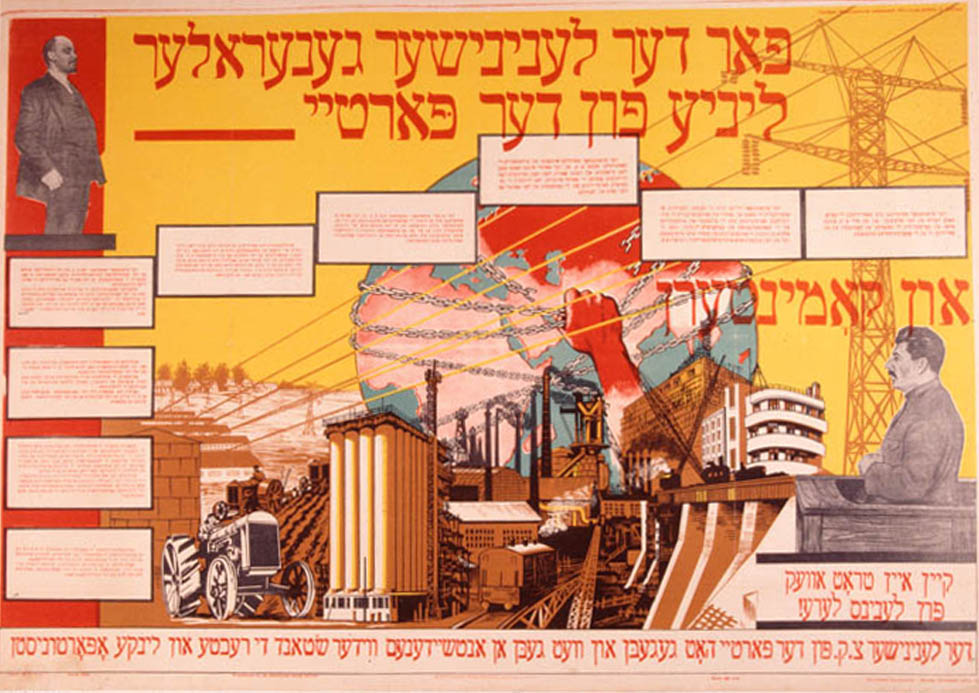 Poster: For the Leninist General Line for the Party and the Comintern. Not one step away from Lenin's Teachings. [Yiddish]
