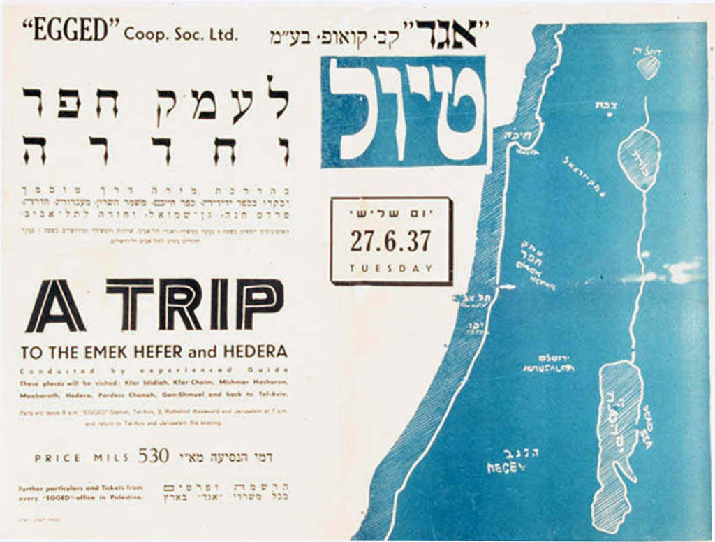 Egged Coop. Society Ltd. advertisement for a trip to the Emek Hefer and Hedera