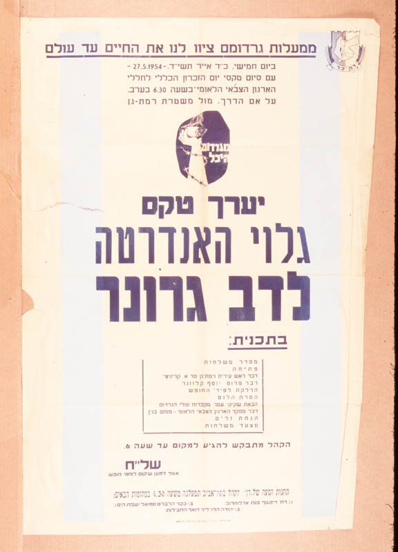 Notice of a memorial ceremony for Dov Gruner (1912-1947)
