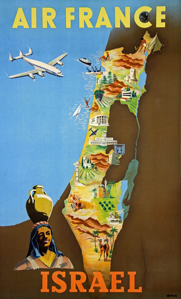 Air France poster with map advertising travel to Israel