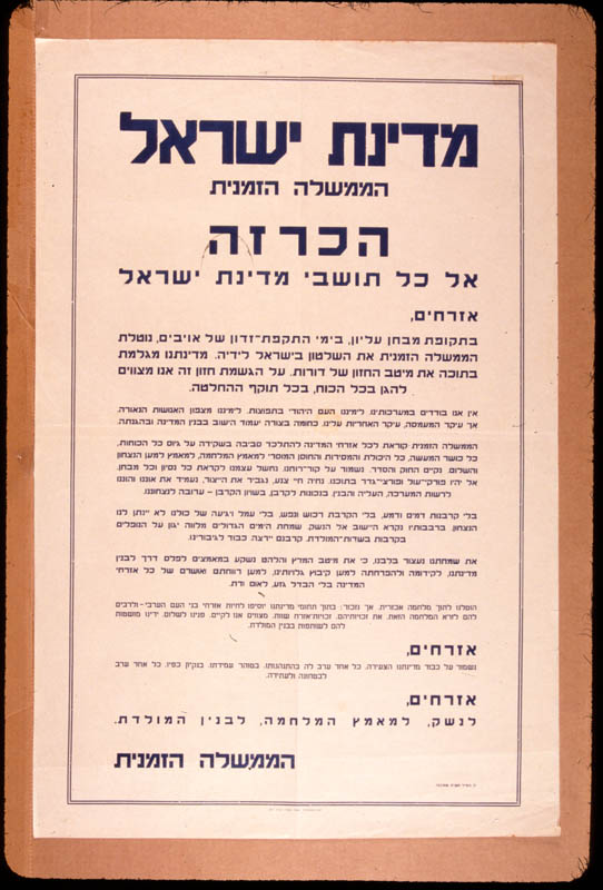 Anouncement by the provisional government of Israel
