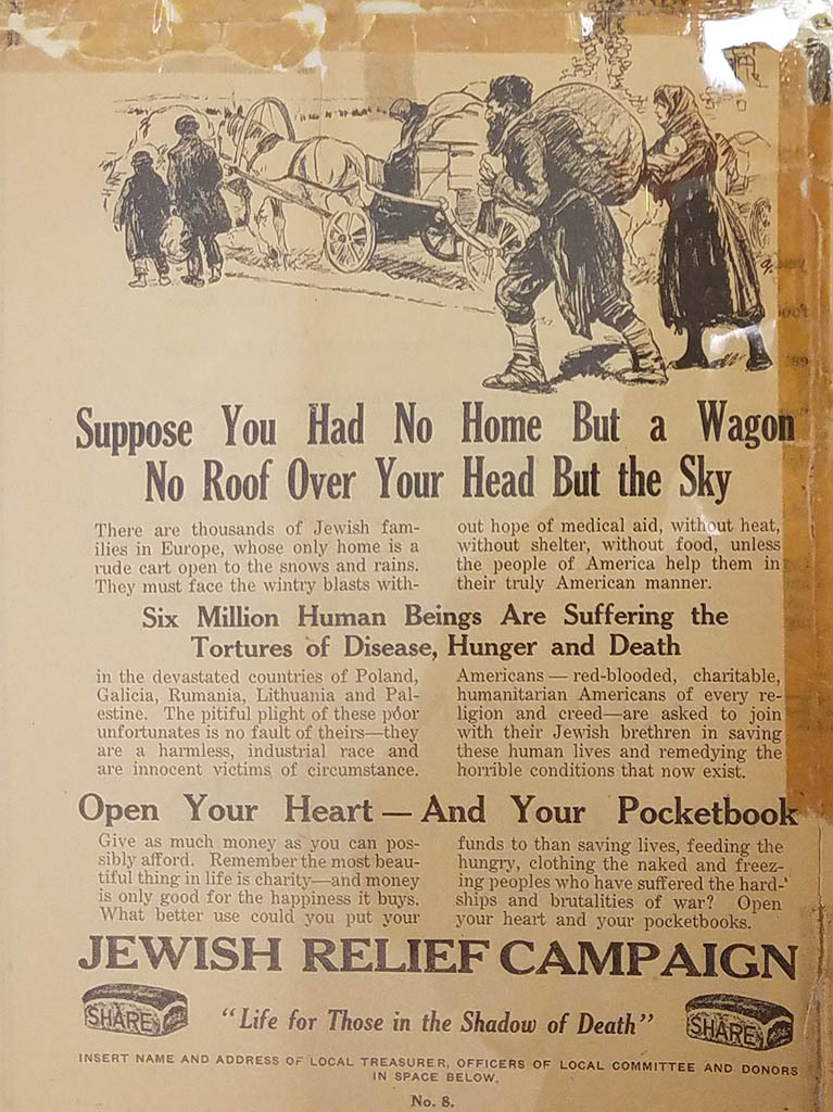 Templates for ads for local chapters of the American Jewish Relief Committee Campaign Share “Life for those in the Shadow of Death”