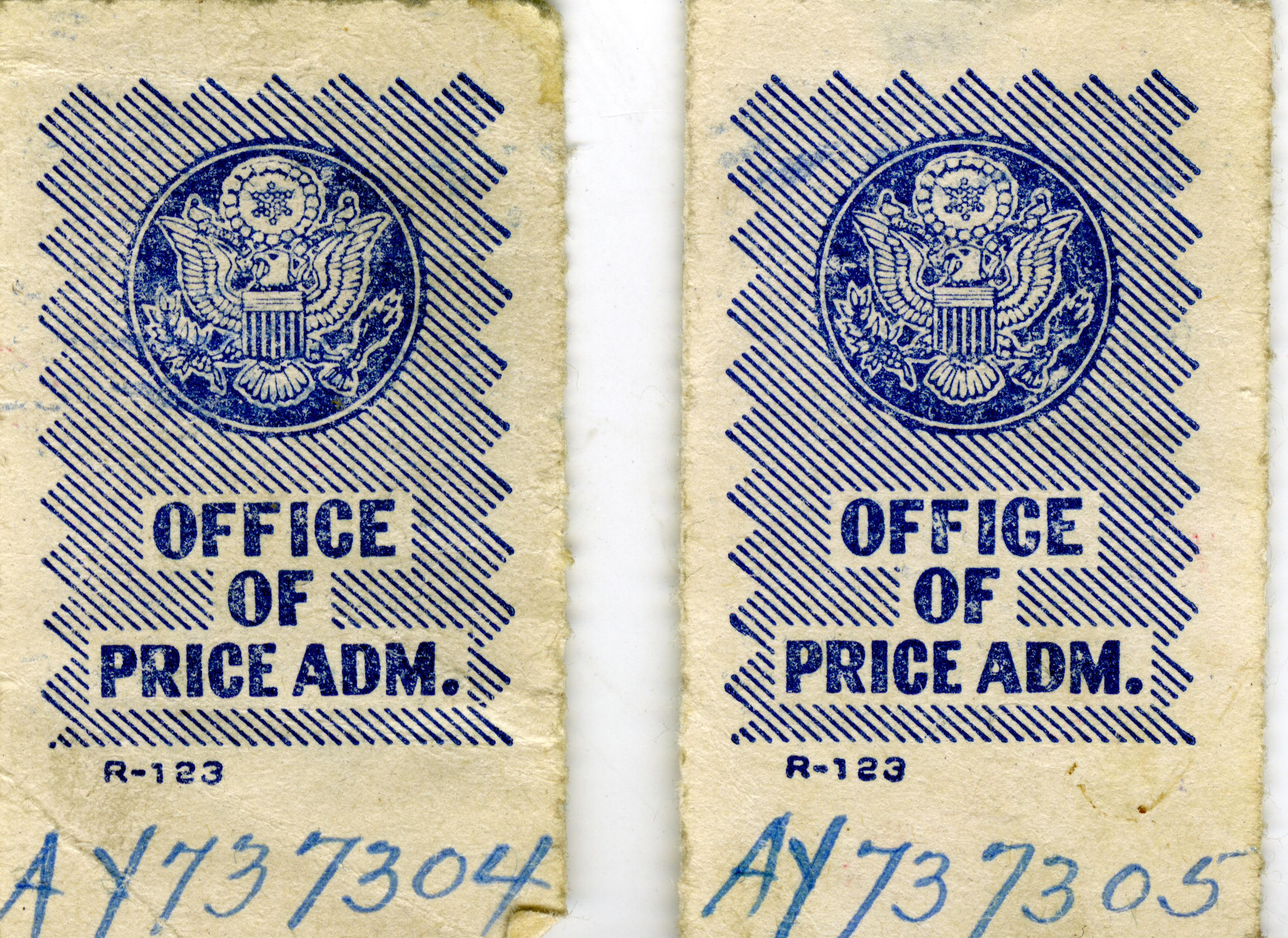 Two war ration stamps inscribed Office of Price Administration |