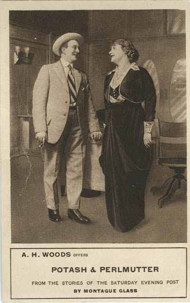 Postcard: A. H. Woods offers Potash & Perlmutter from the stories of the Saturday Evening Post by Montague Glass |