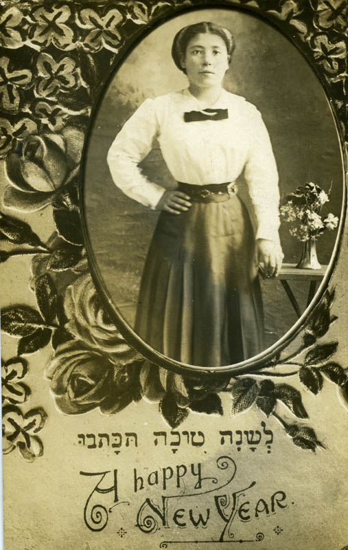 Rosh Hashanah postcard with portrait of a young woman |
