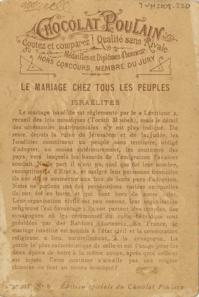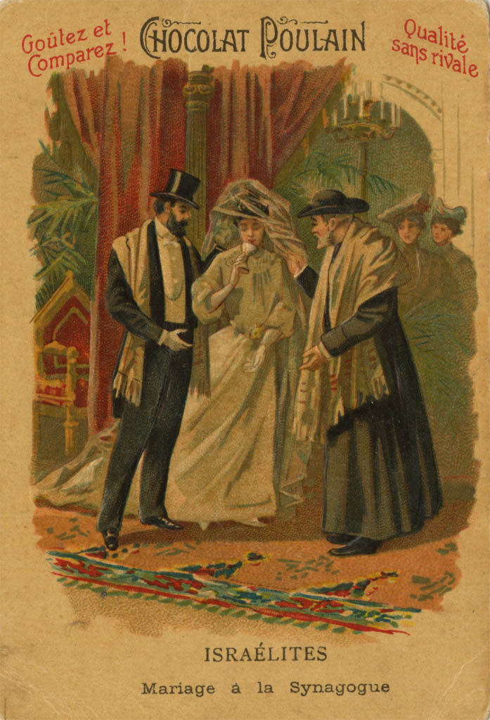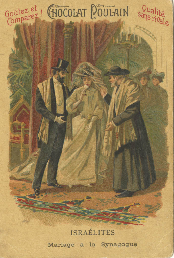 Advertising card for Chocolat Poulain with scene showing a Jewish wedding |