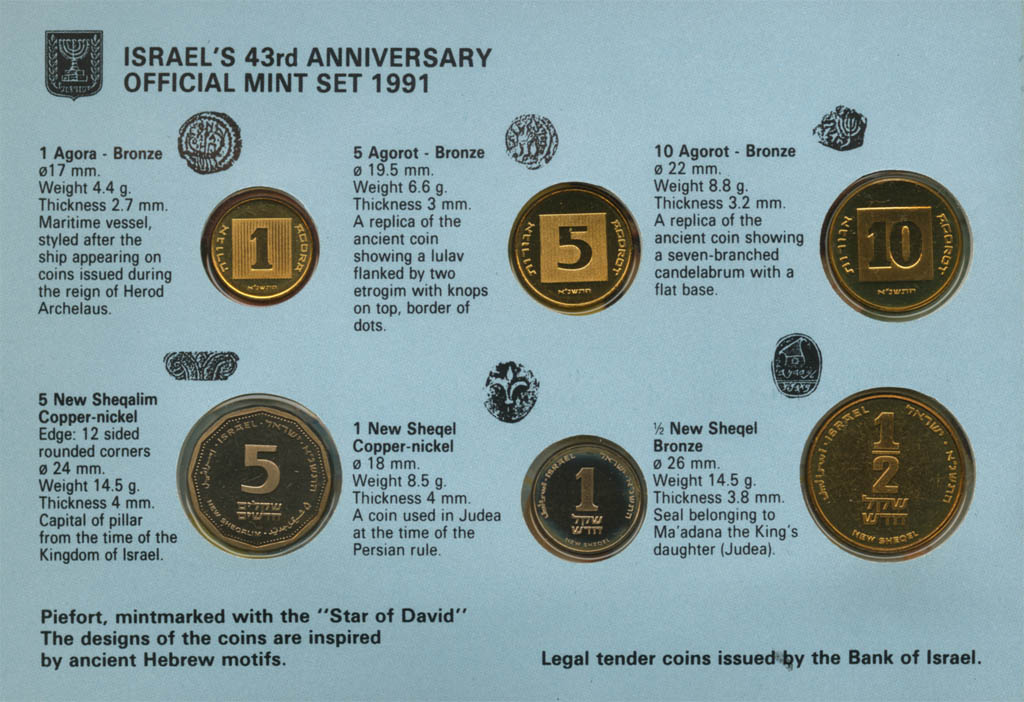 Title: Israel's 43rd Anniversary Official Mint Coins Set