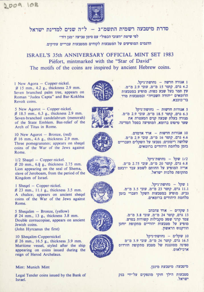 Israel's 35th Anniversary Official Mint Coins Set, Piefort |