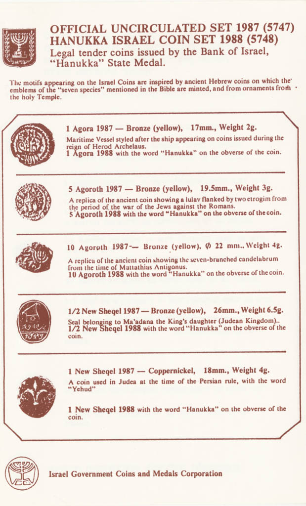 Official Uncirculated Coin Set, 1987/Uncirculated Hanukka Coin Set, 1988 |