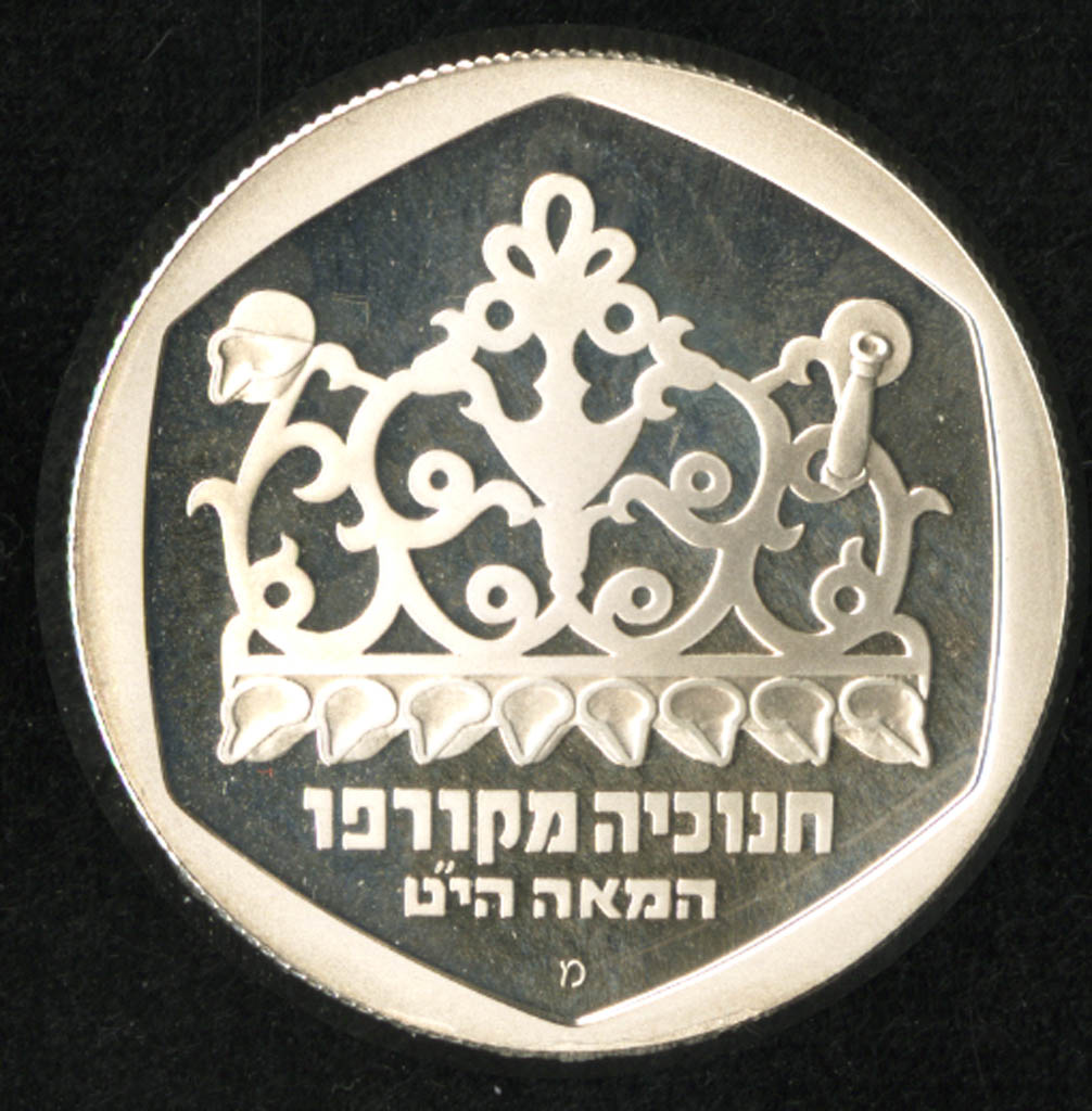 Title: Hanukkah lamp from Corfu Coin