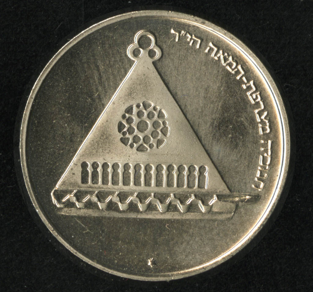 Title: 25 Lirot coin depicting Hanukkah lamp from France