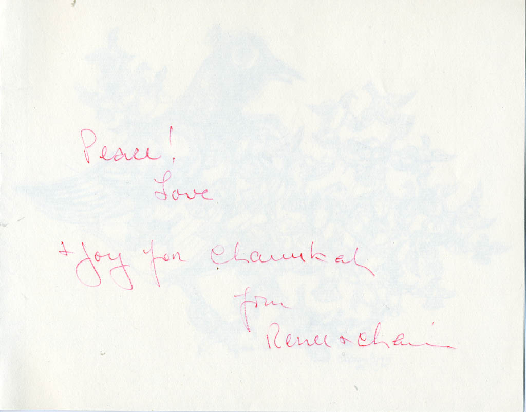 Renee and Chaim Gross Hanukkah card sent to Mr. and Mrs. Bernard Gartlir |