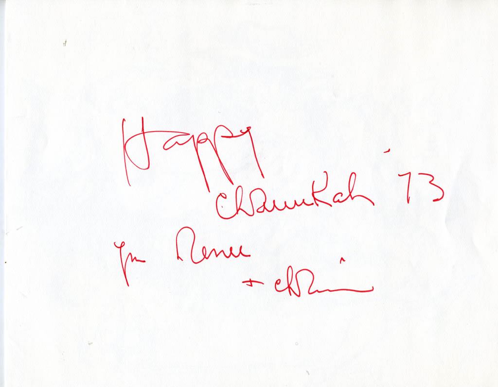 Renee and Chaim Gross Hanukkah card sent to Mr. and Mrs. Bernard Gartlir |