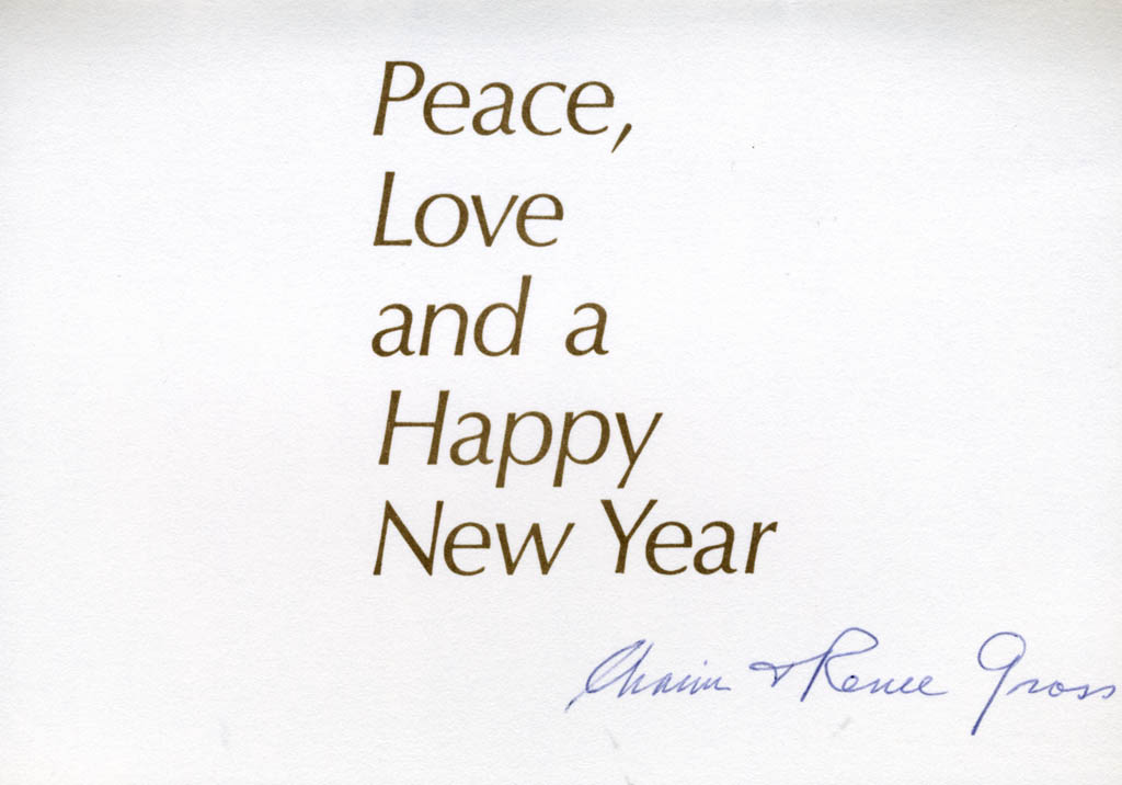 Renee and Chaim Gross New Year card sent to Mr. and Mrs. Bernard Gartlir |
