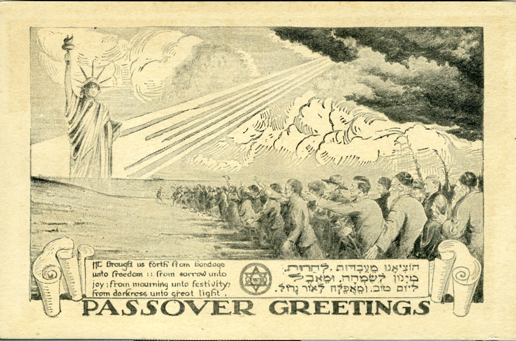 Jewish Welfare Board Passover greeting postcard |