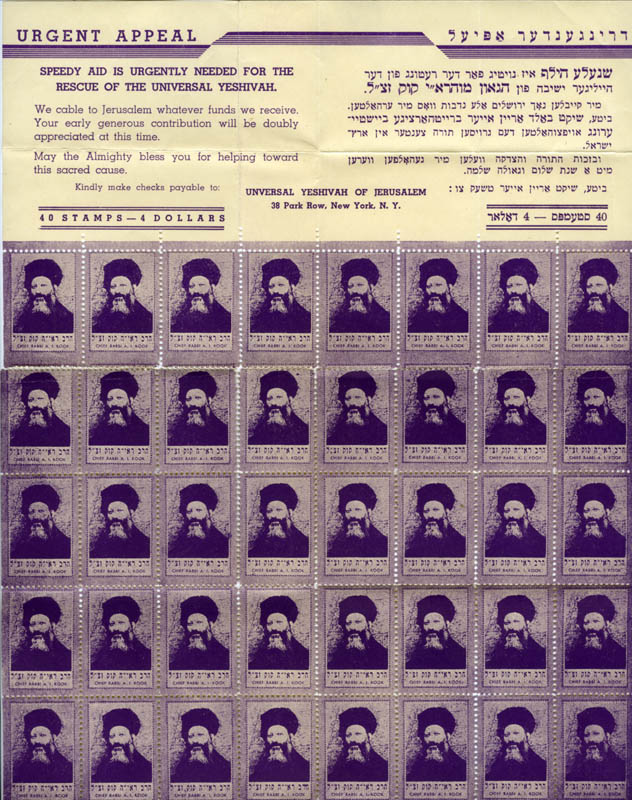 Sheet of charity stamps to benefit the Universal Yeshivah |