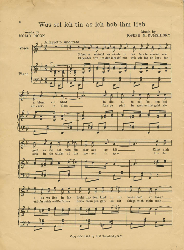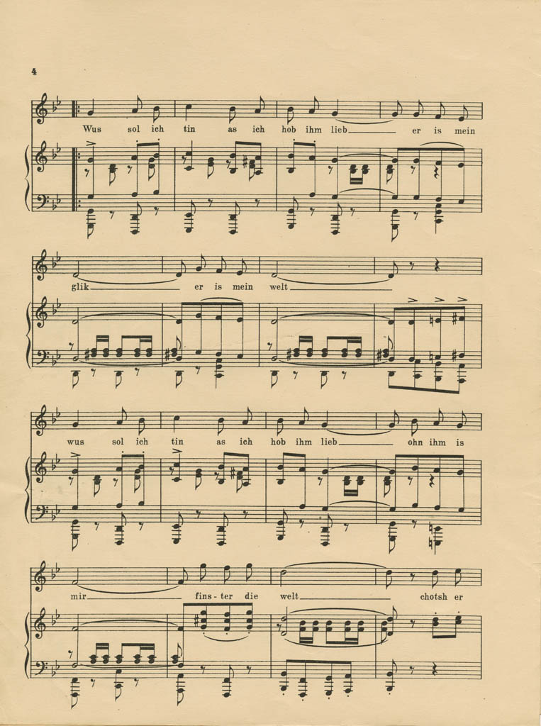 Wus sol ich tin as ich hob ihm lieb; Ich will a meidel wie mein mame |