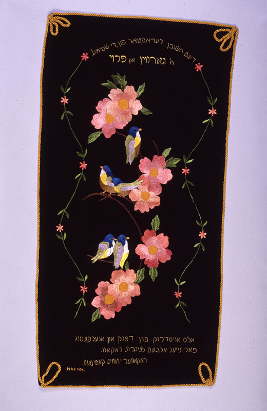 Title: Hanging inscribed in honor of Mr. Garvin and his wife for their work on behalf of the Rakov Orphans