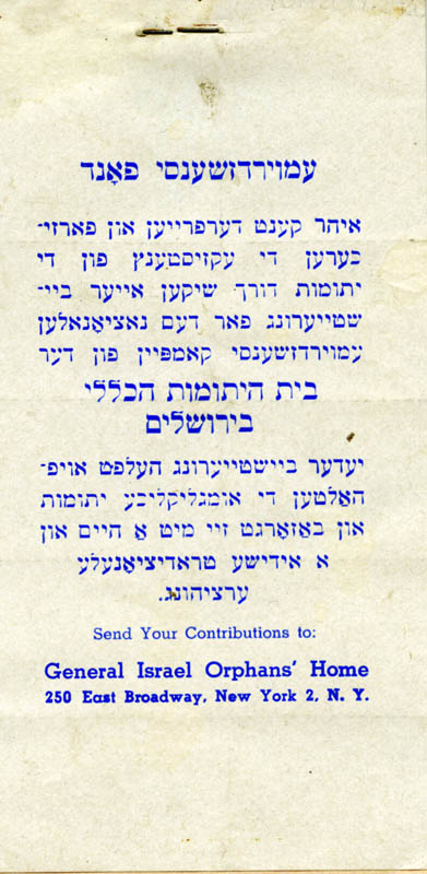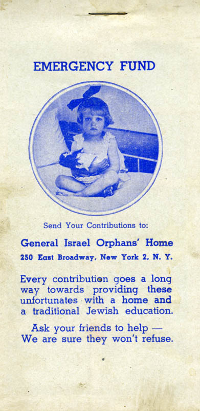 Book of charity stamps fundraiser for General Israel Orphan's Home for Girls |