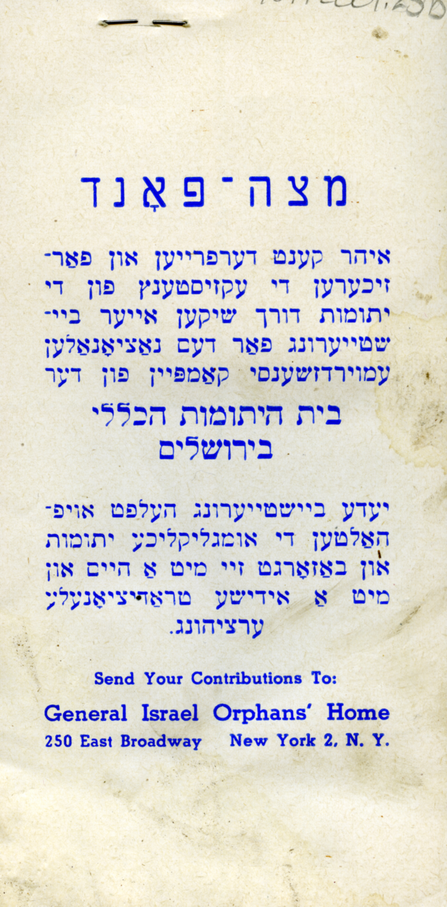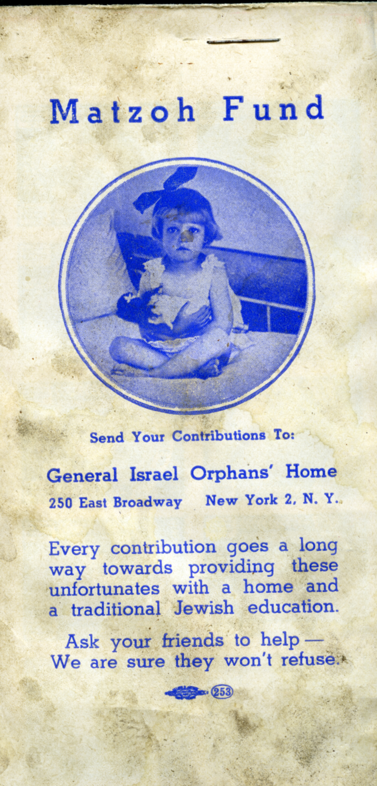 General Israel Orphan's Home for Girls Matzoh Fund booklet of charity stamps |