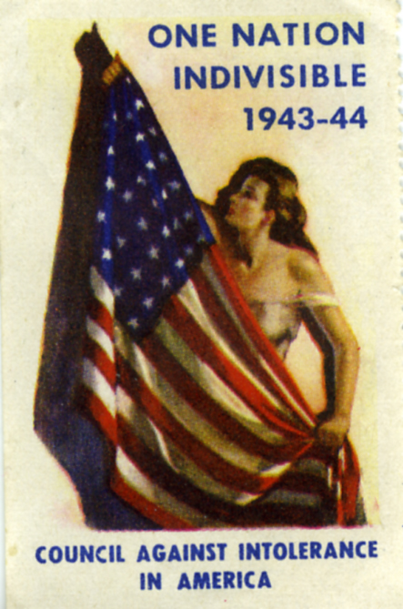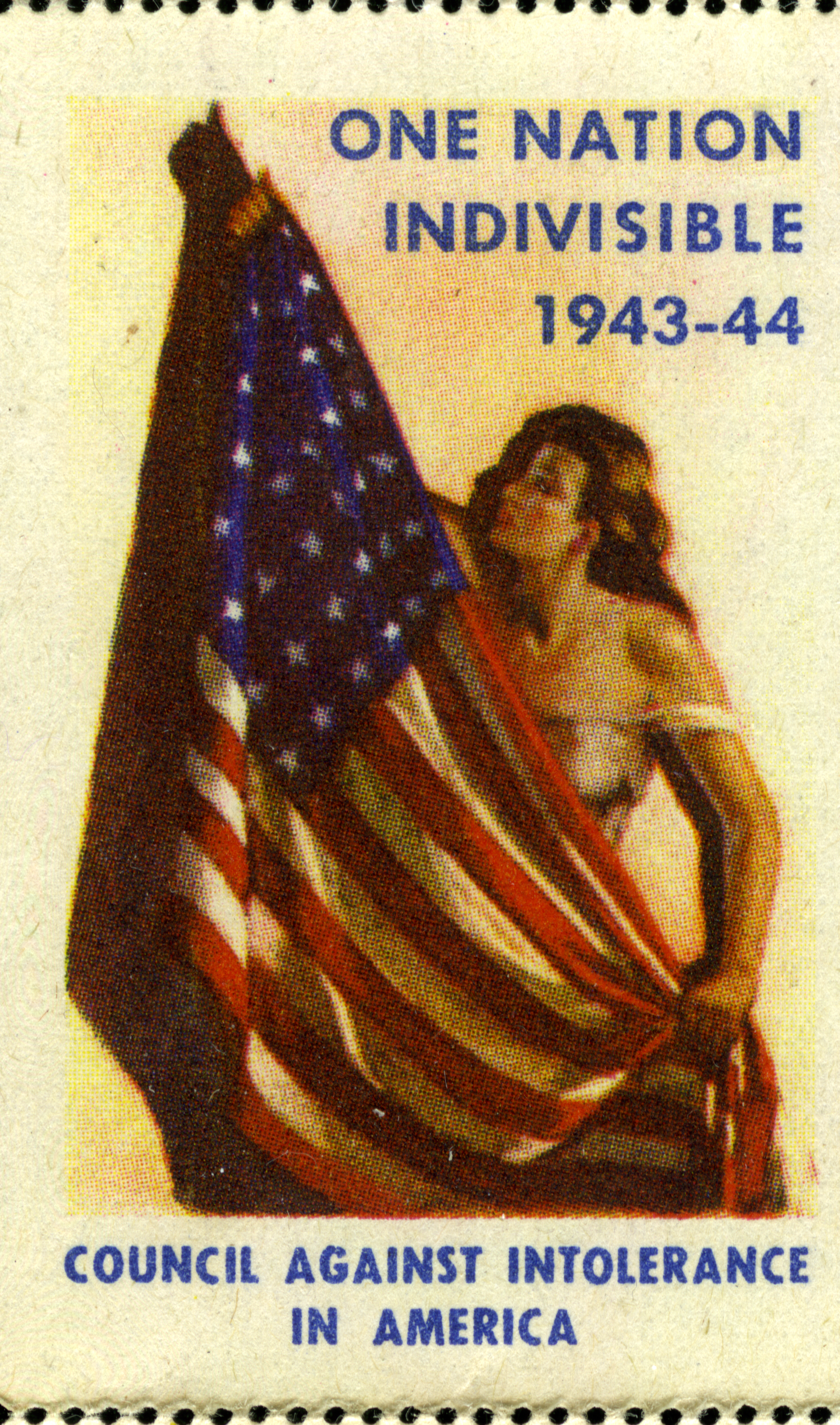 Charity stamp issued by the Council Against Intolerance in America inscribed ONE NATION INDIVISIBLE |