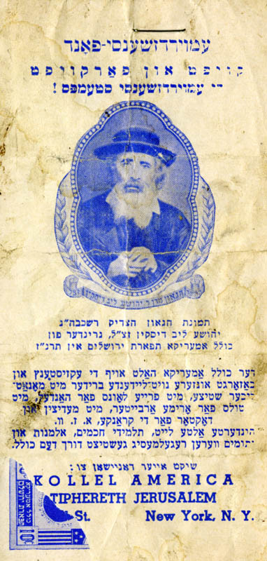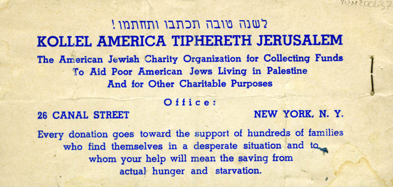 Book of charity stamps for Kollel America Tiphereth Jerusalem |