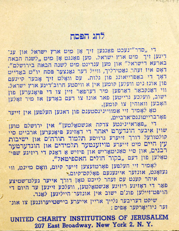 Appeal (obverse) and charity stamps for United Charity Institutions of Jerusalem |