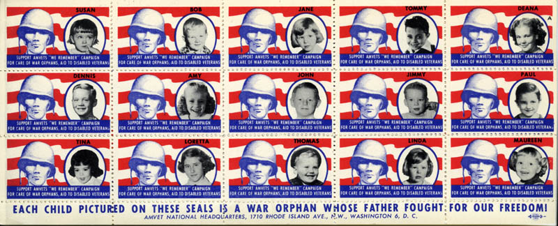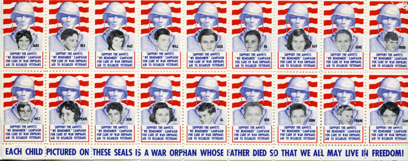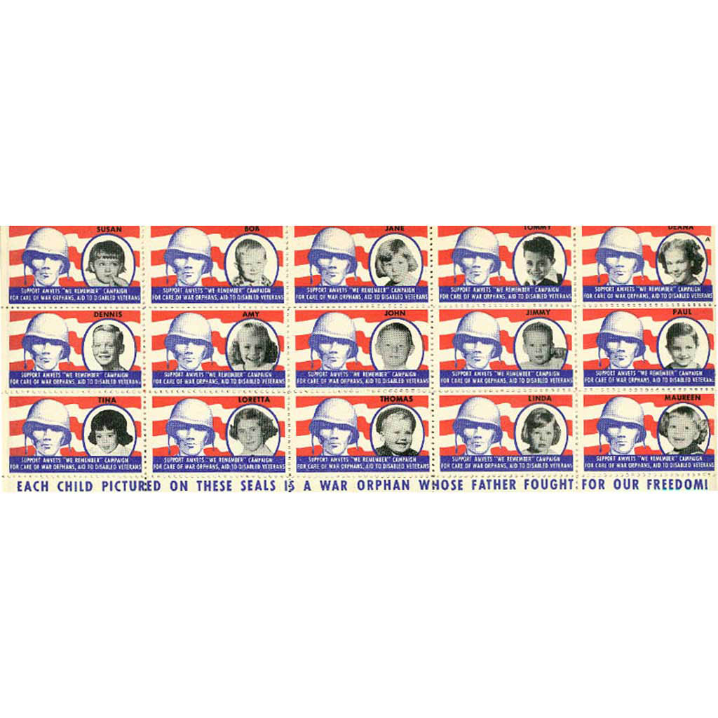 Sheet of charity stamps used to raise funds for disabled veterans and war orphans |