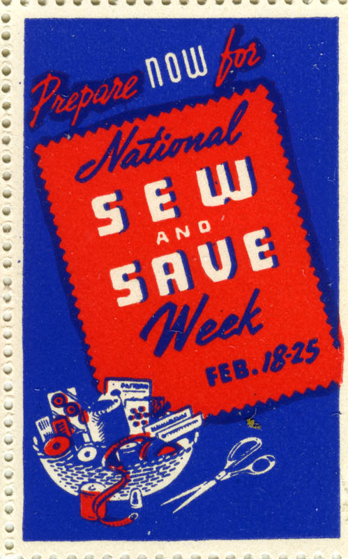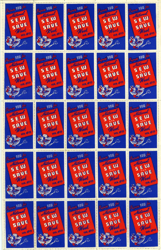 Sheet of cinderella stamps promoting the first national Sew and Save week |